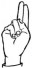 На ћирилици написано РАДНА ВУКОЈИЧИЋ састоји се из 14 слова [?]. Исписано ћириличном једноручном азбуком за глувонеме: